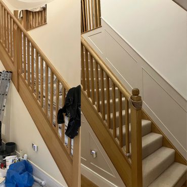 Hall stairs and landing with plaster repairs and stairs painted with floor paint